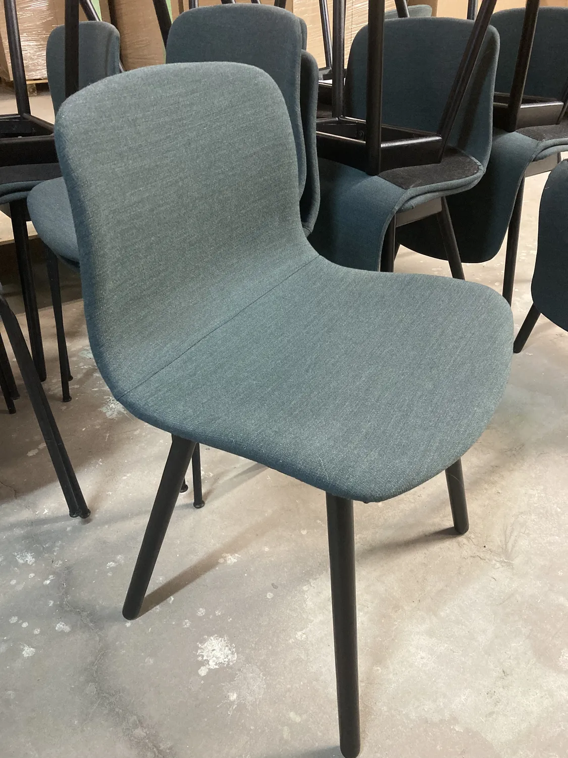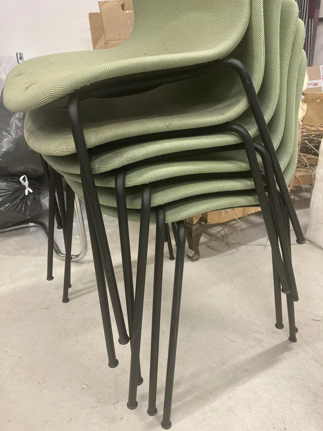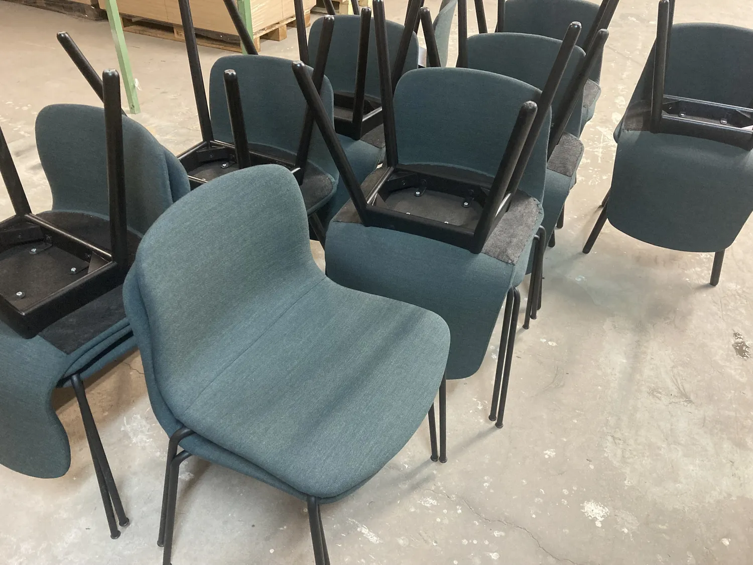 Totalt 20 st stolar av märket Hay har fått ny stoppning och nytt tyg. 14 av dem hade underrede av trä, vilka målades om, och 6 st av metall som kunde behållas i befintligt skick.